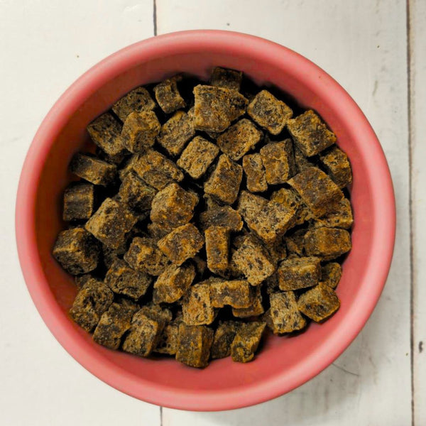 We have created a unique type of food that is different to other dog foods. The food has not been cooked or exposed to high temperatures, nor is it highly processed. The quality raw ingredients are simply mixed together then gently dried for up to 5 days resulting in a semi-moist, great tasting, healthy and nutritious feast.