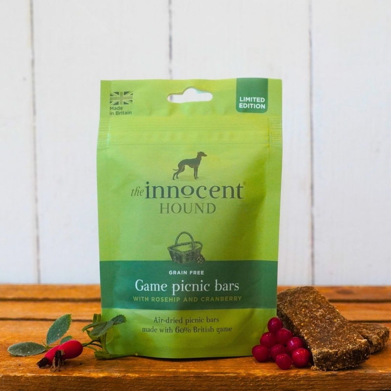 Our nutritious Game Picnic Bars are made with 30% British venison and 30% British duck with cranberry and rosehip. The perfect treats for your dog to enjoy on their active adventures.