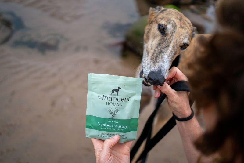 Exquisite British venison combined with a handful of juicy chopped apples make these sausages the ultimate in luxury treats for your best friend. Serve whole or tear into smaller pieces but hands off - they're not for you!